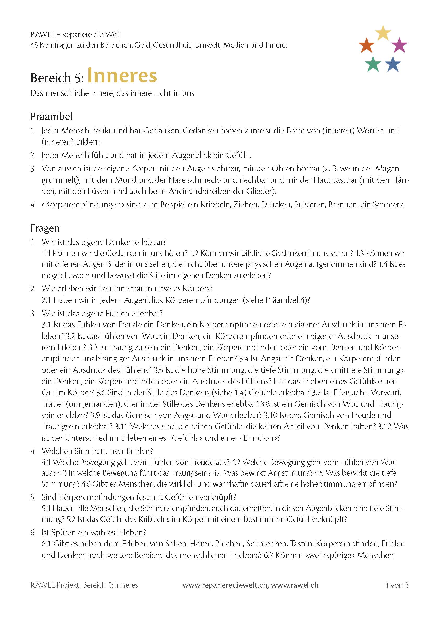 9 Kernfragen zum Thema des menschlichen Innern, Gedanken, Gefühle, Sinne, Spüren, Geist und Seele